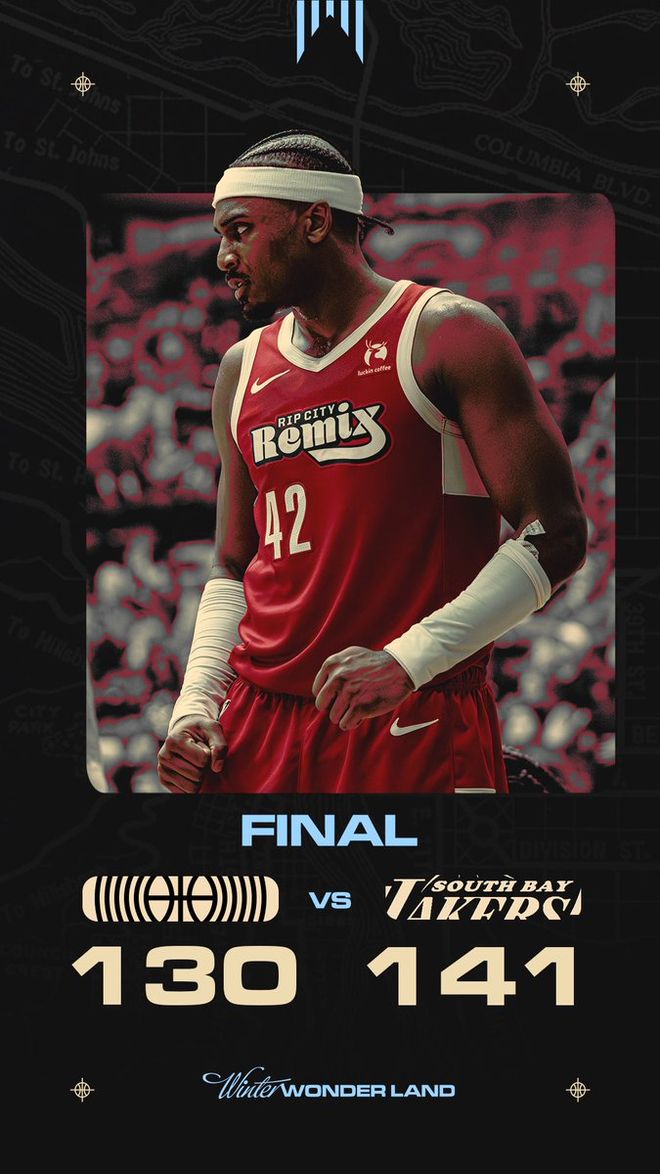 在此前的一场NBA发展联盟比赛中,洛杉矶湖人在NBA发展联盟的下属球队南湾湖人以141比130战胜了主场作战的波特兰开拓者在NBA发展联盟的下属球队撕裂城混音。本场比赛后,南湾湖人的战绩提升到了6胜4负;而撕裂城混音的战绩则是下滑到了5胜4负。