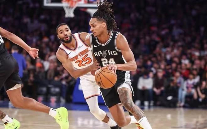 第二节开打科内特内线又补篮,尼克斯防守篮板保护太差了,布里奇斯中距离有了,尚帕尼三分开火,阿奴诺比2+1,哈珀三分也有,布里奇斯中距离继续中,转换过来哈珀三分还有,唐斯自投自抢内线得分,科内特杀入内线轻松上篮这得分效率高得吓人43-37马刺慢慢领先到了6分,福克斯传球被断哈特持球过来给到阿奴诺比造犯规,但是两罚都不中好在球权还在手里,科勒克挂掩护出来三分有了,文班亚马罚球线跳投得分。科勒克运球过半场被福克斯抢断赔上犯规,后者两罚一中马刺依旧领先6分。布伦森想给空接,球被破坏尼克斯继续进攻,连续进攻篮板但是都没有打成,双塔阵容篮板优势开始显现,瓦塞尔三分不中布伦森持球过来单打福克斯造成犯规,6分59秒先进暂停!比赛继续布伦森边线开球,克拉克森单打没有罗宾有前场篮板助攻阿奴诺比三分飚中43-46!