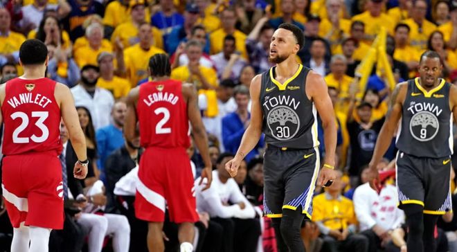 G3库里和伦纳德展开得分对飙,库里贡献了全场最高的47分,但双拳难敌四手,在猛龙6人上双的情况下,勇士只能接受惨败的事实。