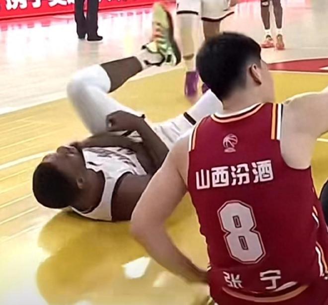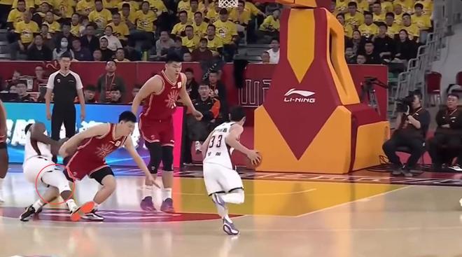 没错,这位“腿功”厉害的队员就是张宁。进入第四节不久,吴前持球进攻,大外援约瀚逊为他掩护,张宁绕掩护时伸出“铁腿”撩倒了约瀚逊,庞大身躯的约瀚逊重重倒在地上,作出痛苦状,一边望裁判,一边骂着什么,裁判吹张宁一个普通犯规。在丁伟的抗议下,裁判看了回放后,最终维持原判,没有升级,张宁逃过违体判罚。但不得不说这一动很危险,重则可以把约瀚逊的腿弄断。