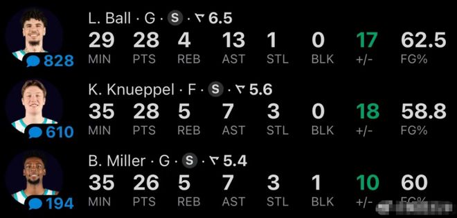 黄蜂值得一提的是三球,米勒和克尼普尔,三人合砍82分27助,黄蜂也有了自己的三叉戟,你说下场谁是戟把?