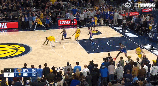 兄弟们,谁能想到啊,刚NBA杯夺冠的尼克斯正士气势如虹,竟然和东部倒数第2的步行者打得难分难解,有来有回……