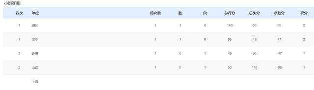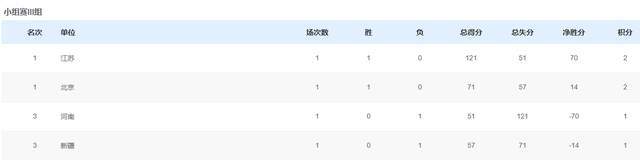 随着江苏121-71,北京71-54,全运女篮积分榜出炉了,四川独一档