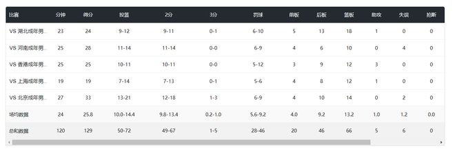 目前全运会5场比赛,周琦场均仅登场24分钟,拿到25.8分13.2篮板1助攻0.8盖帽,命中率69.44%,不得不说太恐怖了,场均1分钟得分超过1分,说周琦是国内联赛第一人一点都为不过,在没有外援的比赛下周琦就是奥尼尔一般的存在。