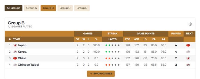 男篮世预赛,中国台北队客场再度不敌日本队吞下一波二连败,不过在主场有球迷的呐喊声他们G2只输了7分,两场比赛合计输掉33分,中国台北男篮依旧是B组垫底的存在。