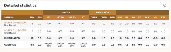 33岁的林书纬在今夏获得了FIBA的本土球员评估,他代表中国台北男篮出战世预赛,这是他生涯首次征战FIBA世预赛,也是生涯第二个FIBA洲际大赛(他打过东超),只可惜33岁的他来到FIBA的赛场根本匹配不上强度,世预赛跟P联赛、东超有着巨大的强度差距。