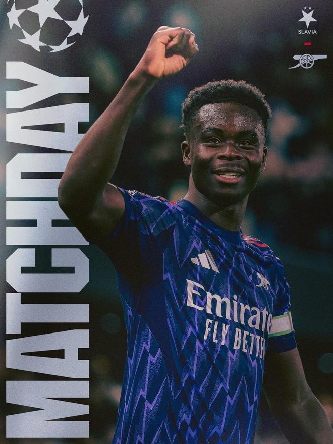 本赛季欧冠联赛阶段第4轮,阿森纳客场对阵布拉格斯拉维亚。阿森纳官方更新赛前海报,萨卡单人出镜。