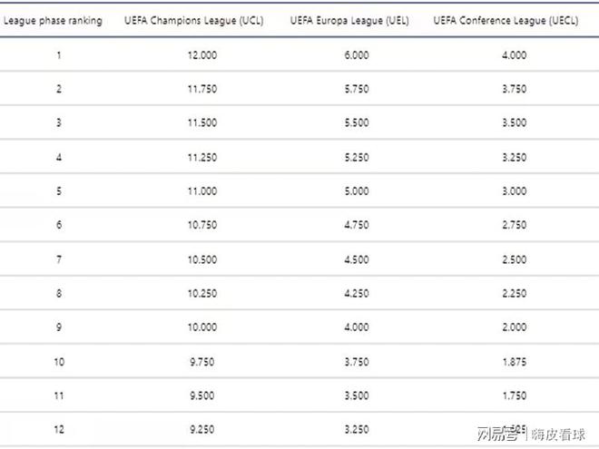 由于本赛季欧洲积分规则进行了修改,联赛阶段的排名先后,会有不同的奖励积分,排名靠前的权重增加了不少。过去,只要晋级欧冠16强,奖励积分基本上不会相差太多,现在不同了,欧冠联赛阶段第一名,足足有12分的奖励积分,随后依次递减。